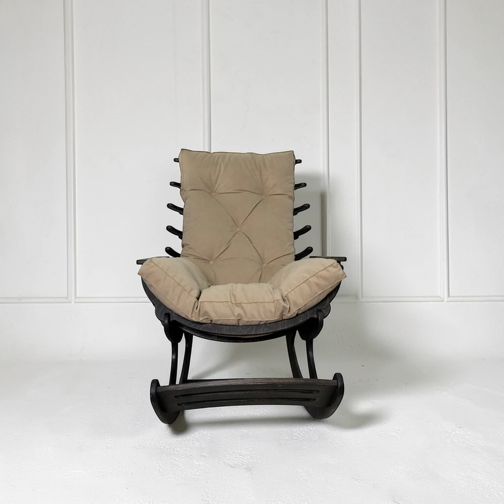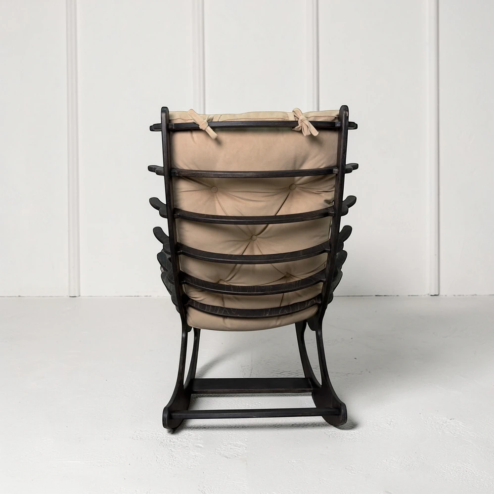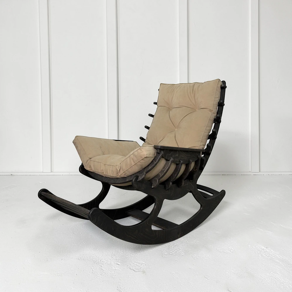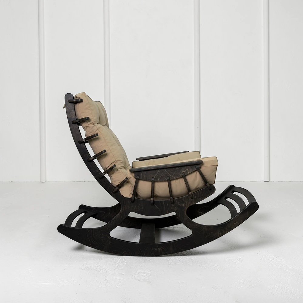 Кресло-качалка Fiamma - черный / Latte создано для тех, кто ценит тишину, комфорт и настоящее расслабление. Продуманная форма позволяет телу занять естественное положение - спина, шея и поясница отдыхают, руки удобно лежат на удлинённых подлокотниках, а ноги располагаются без напряжения.