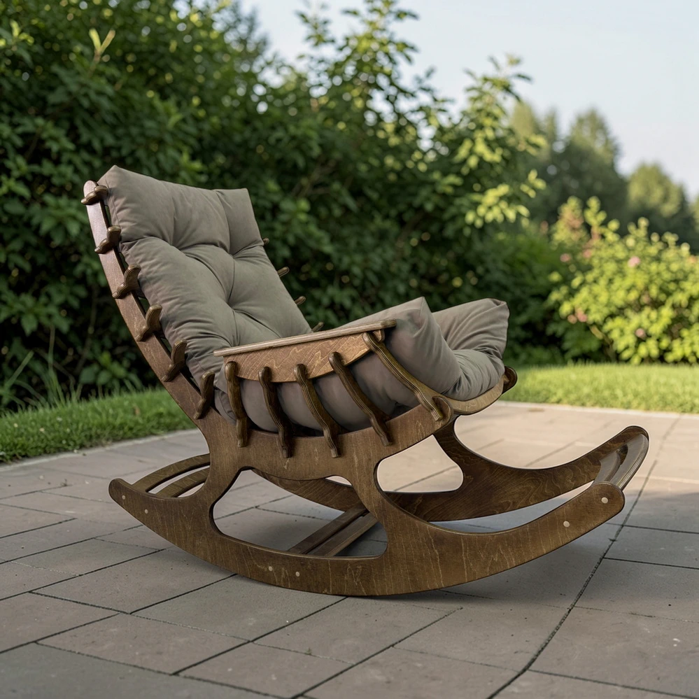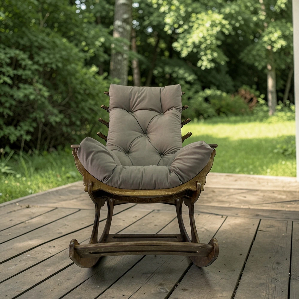 Кресло подходит не только для интерьера, но и для улицы. Его можно поставить на террасе, в беседке или в тихом месте участка. Главное условие - ровная поверхность без песка и мелких камней. Тогда качание будет плавным, а срок службы - максимальным.
