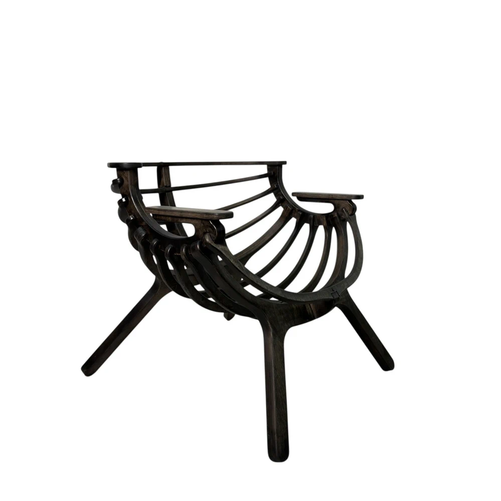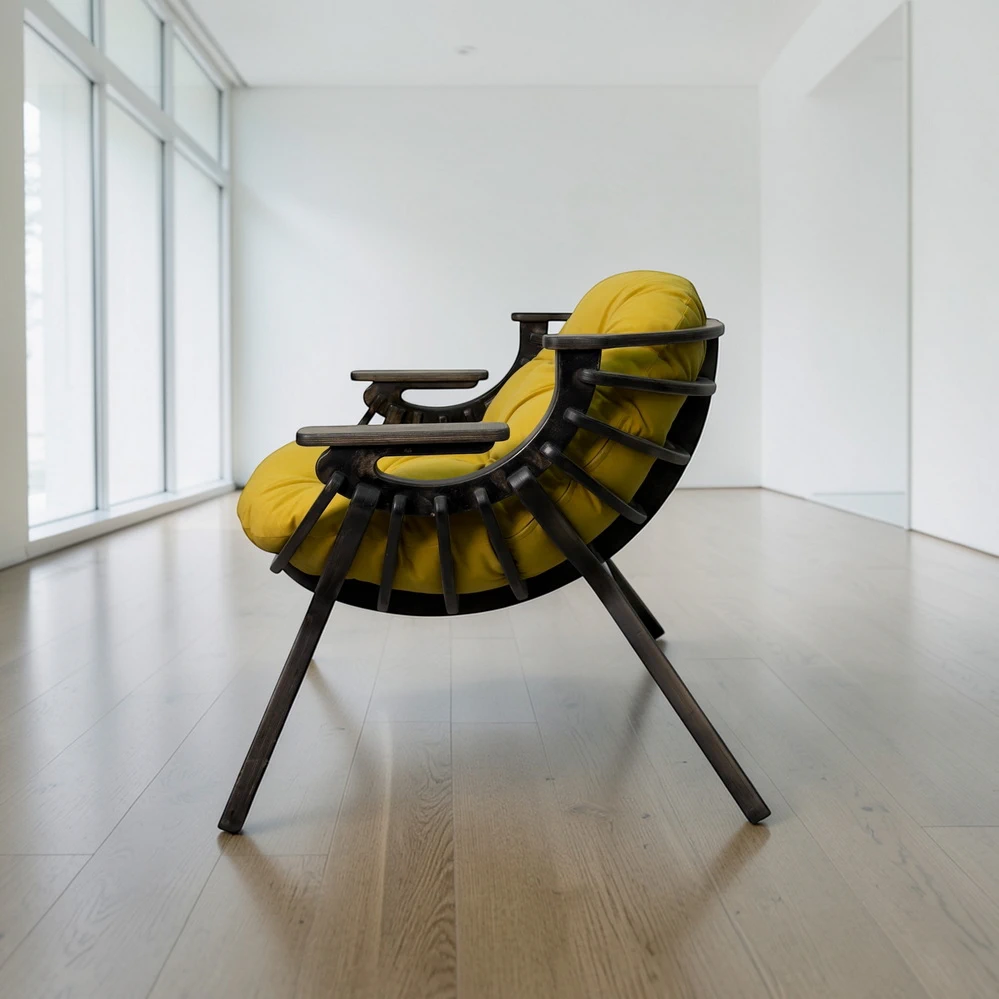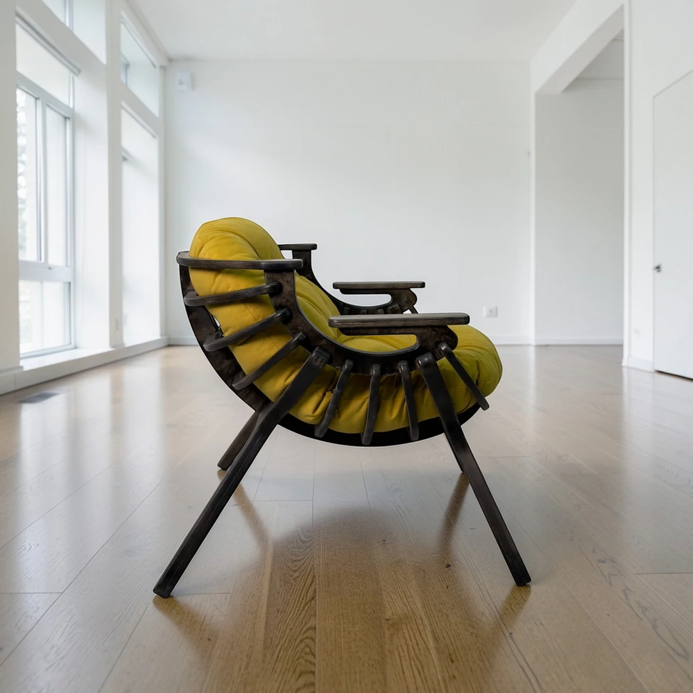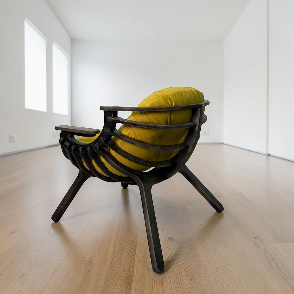 Форма кресла напоминает кокон, повторяя естественные контуры тела. Подлокотники продолжают линию рук, создавая удобную опору и снимая нагрузку с плеч и спины.