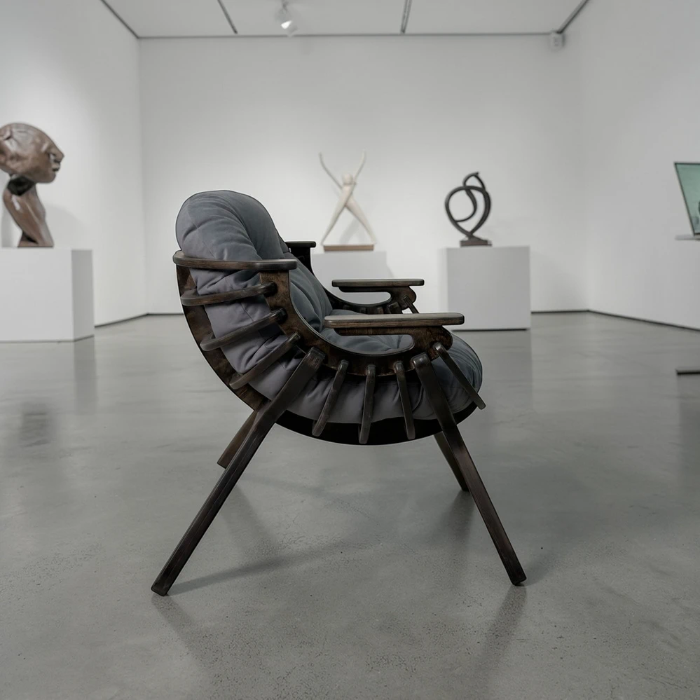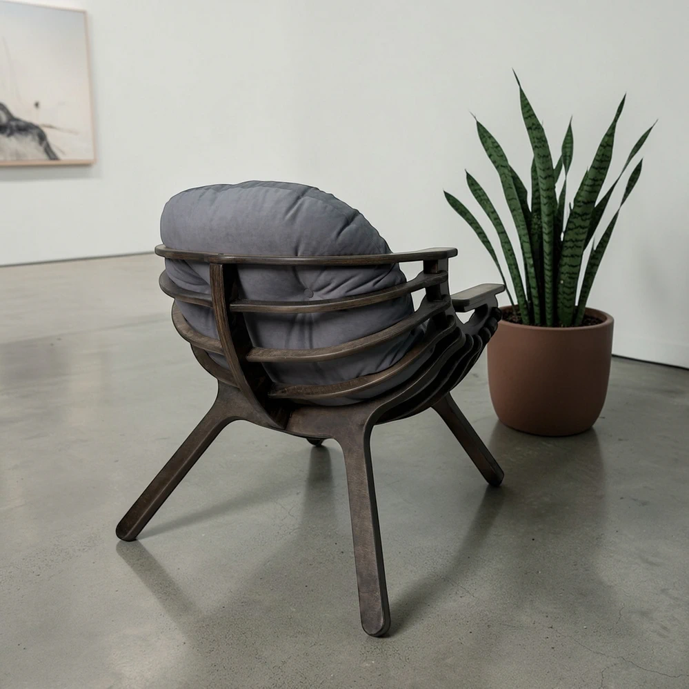Изящная форма в виде кокона повторяет линии тела, подлокотники поддерживают руки в естественном положении, снижая нагрузку на плечи и спину.