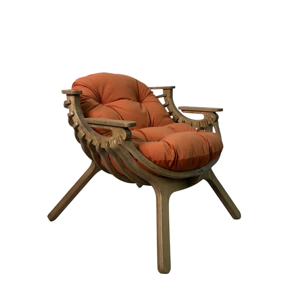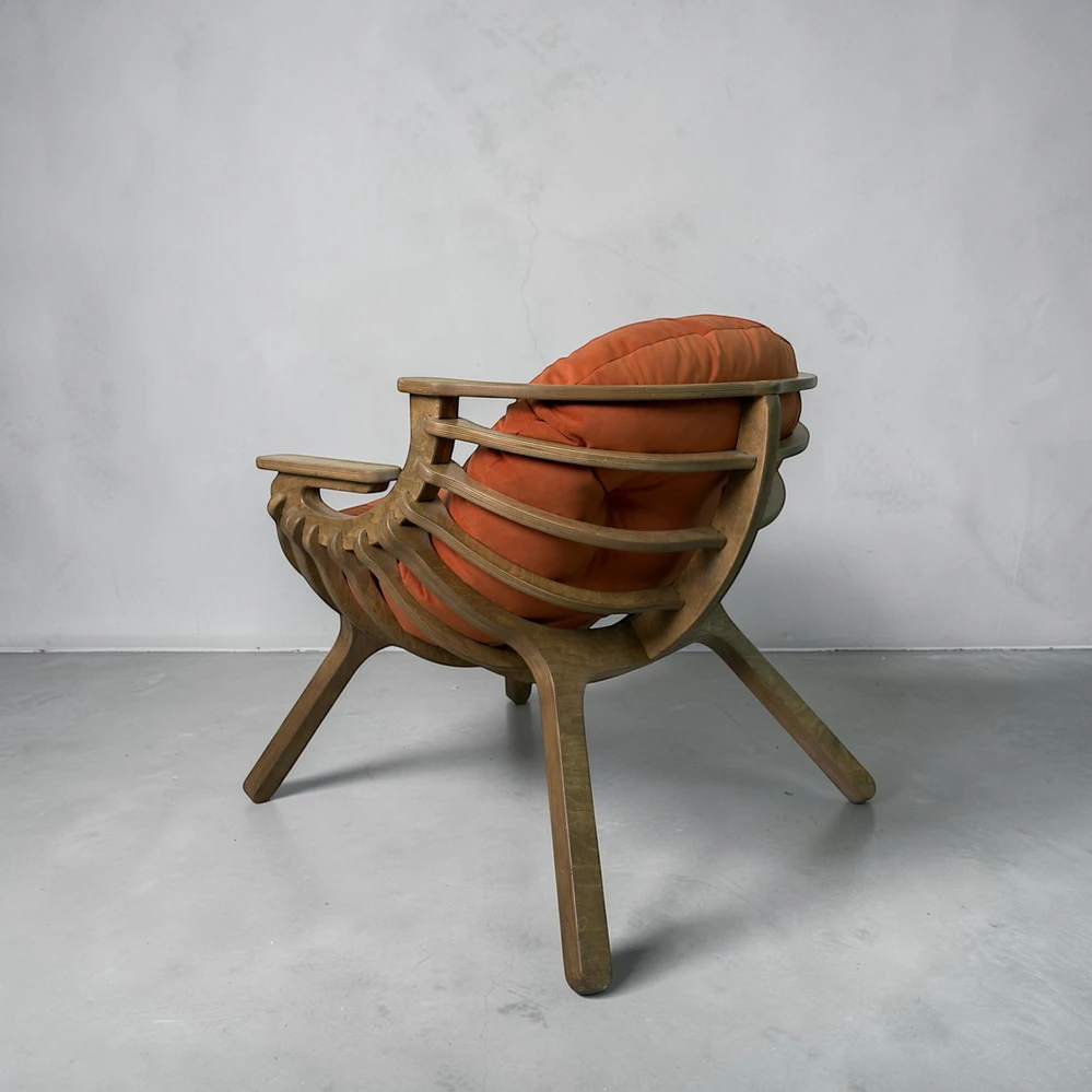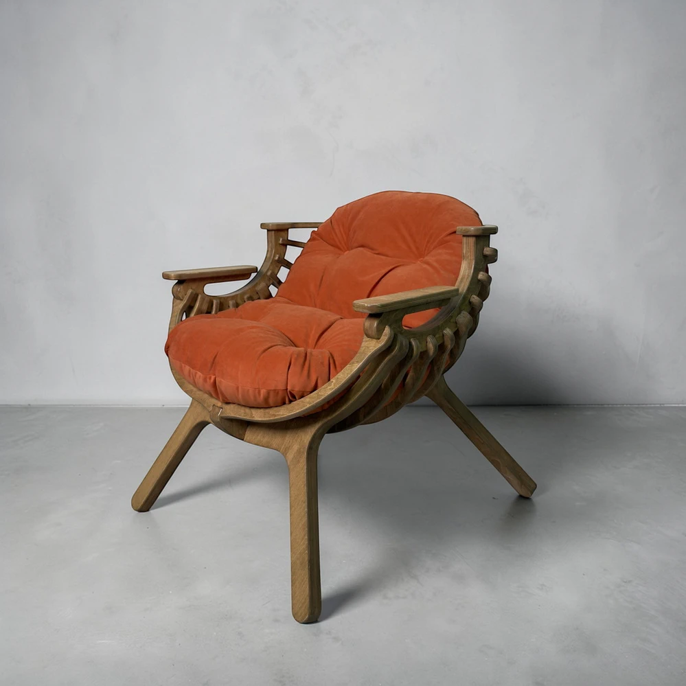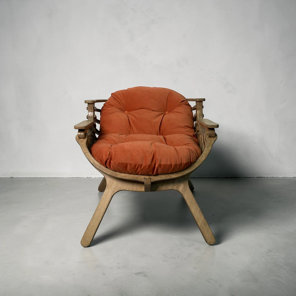 Каркас выполнен из березовой фанеры толщиной 18 мм с усиленной конструкцией. Это обеспечивает прочность и устойчивость при ежедневном использовании. Поверхность обработана вручную - кресло приятно на ощупь и аккуратно выглядит в любом интерьере.