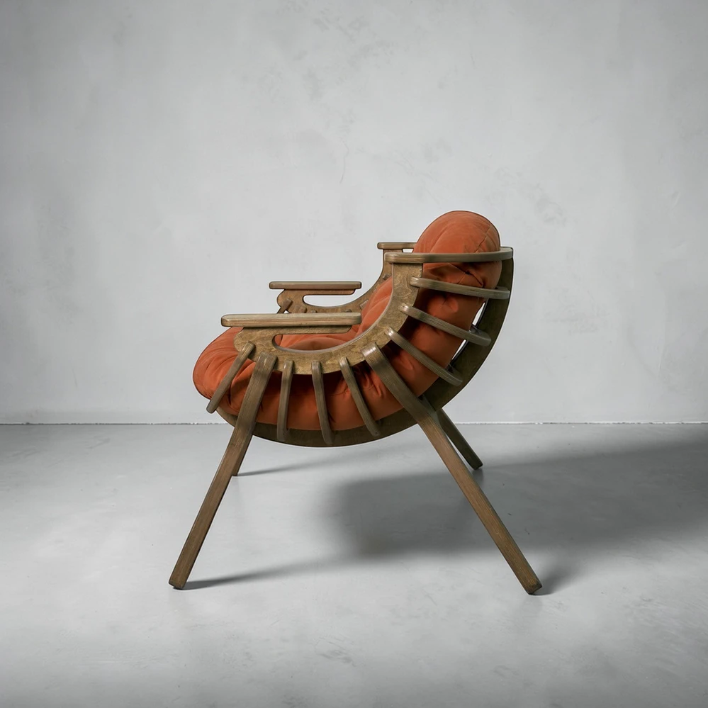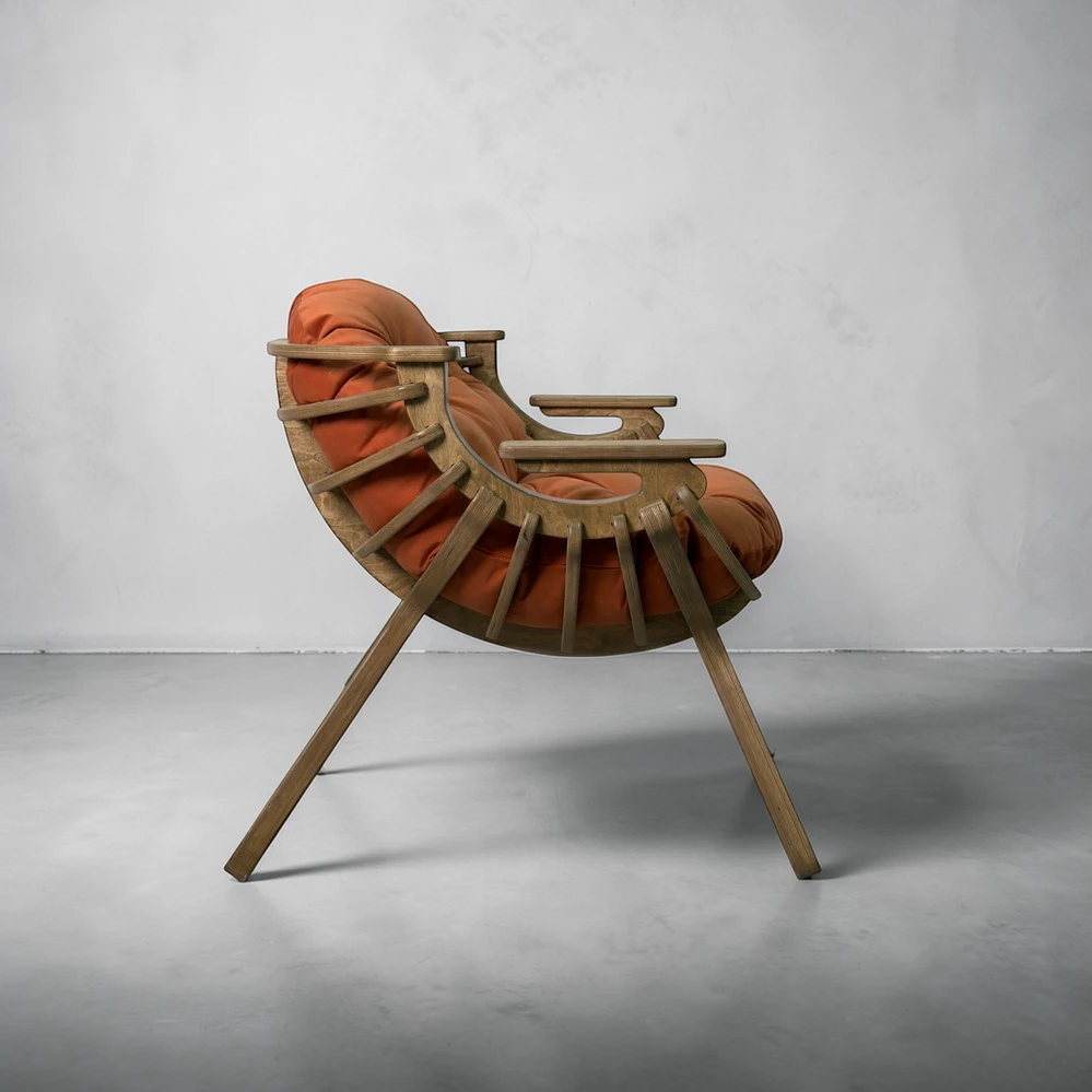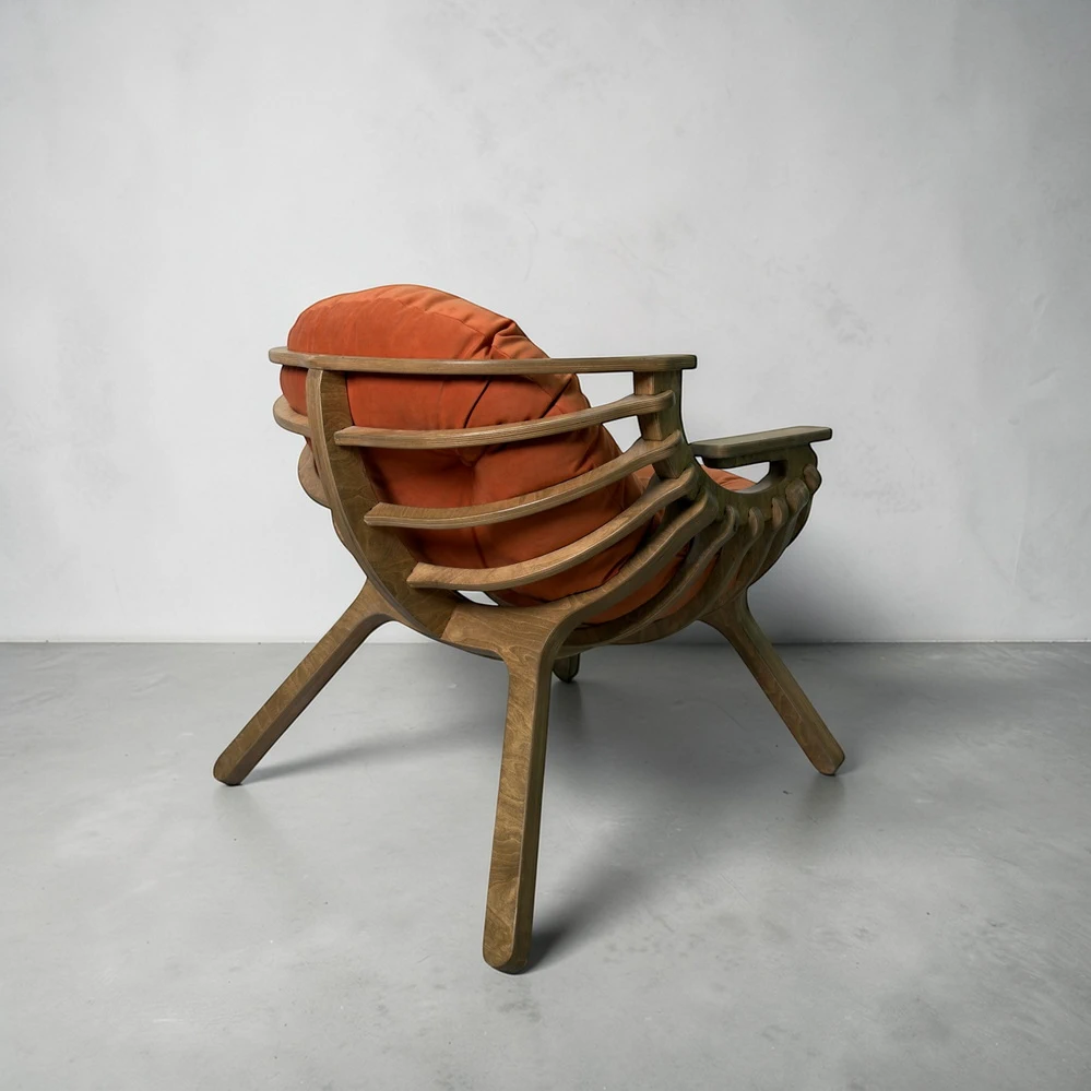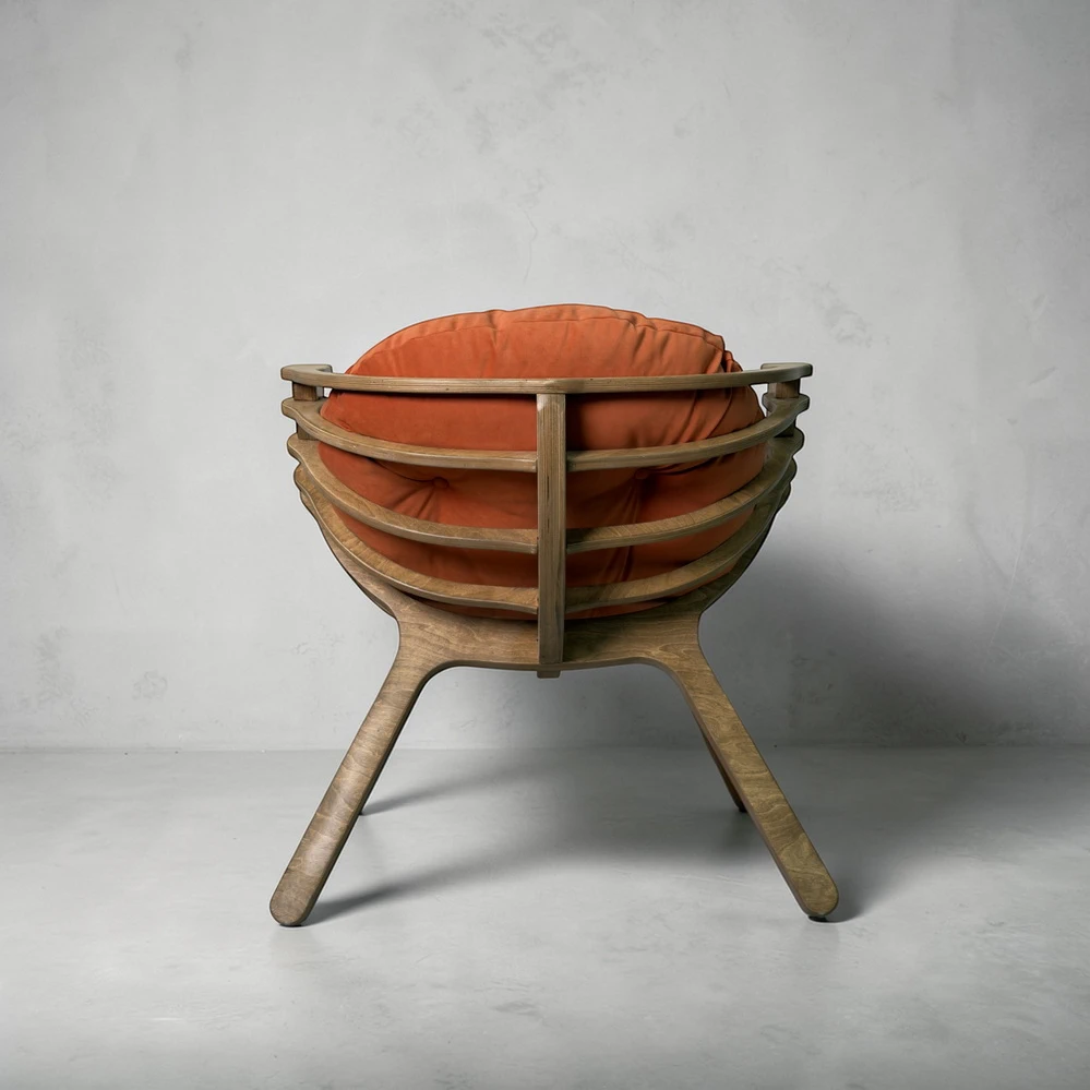 Каркас выполнен из березовой фанеры толщиной 18 мм с усиленной конструкцией. Это обеспечивает прочность и устойчивость при ежедневном использовании. Поверхность обработана вручную - кресло приятно на ощупь и аккуратно выглядит в любом интерьере.