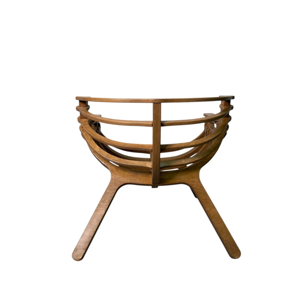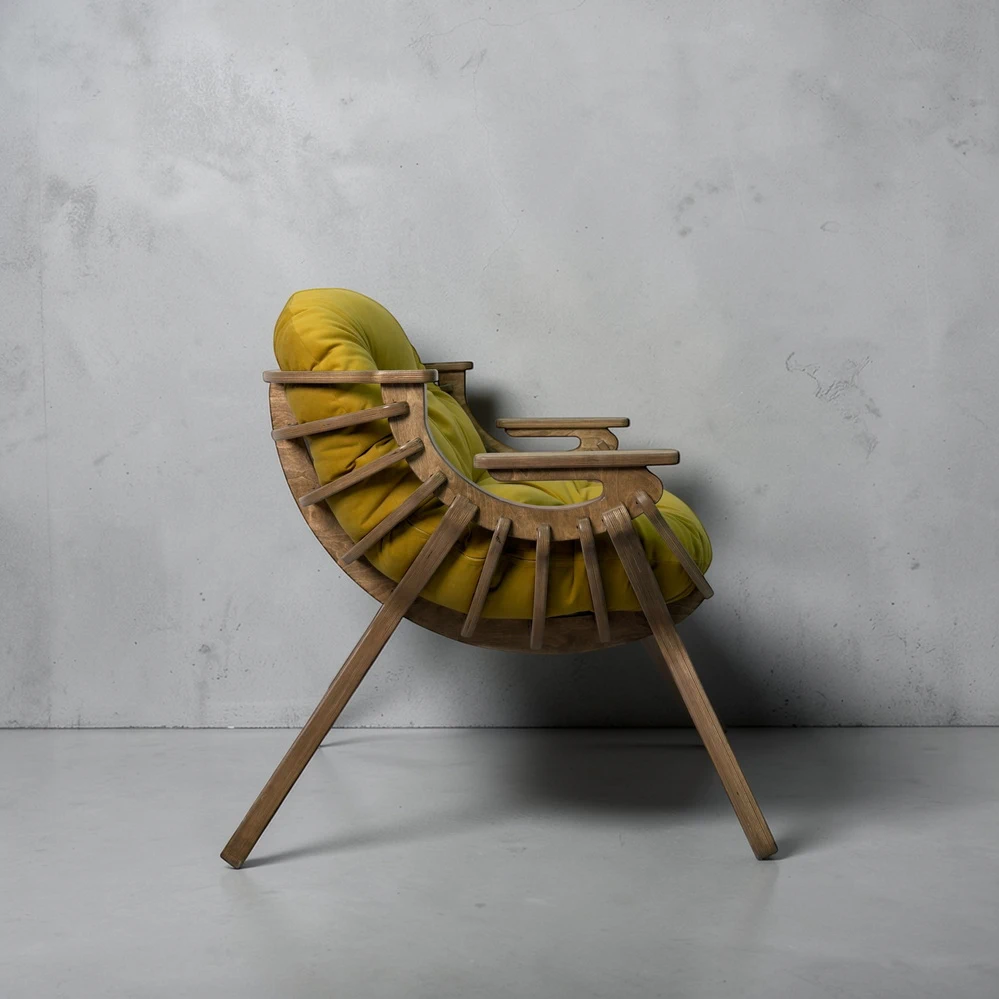 Главная особенность кресла - три варианта размещения рук. Вы можете оставить руки свободно опущенными, использовать классические подлокотники или опереться на верхнюю часть каркаса. Такое решение особенно удобно для высоких людей и тех, кто не любит сидеть в одной позе.
