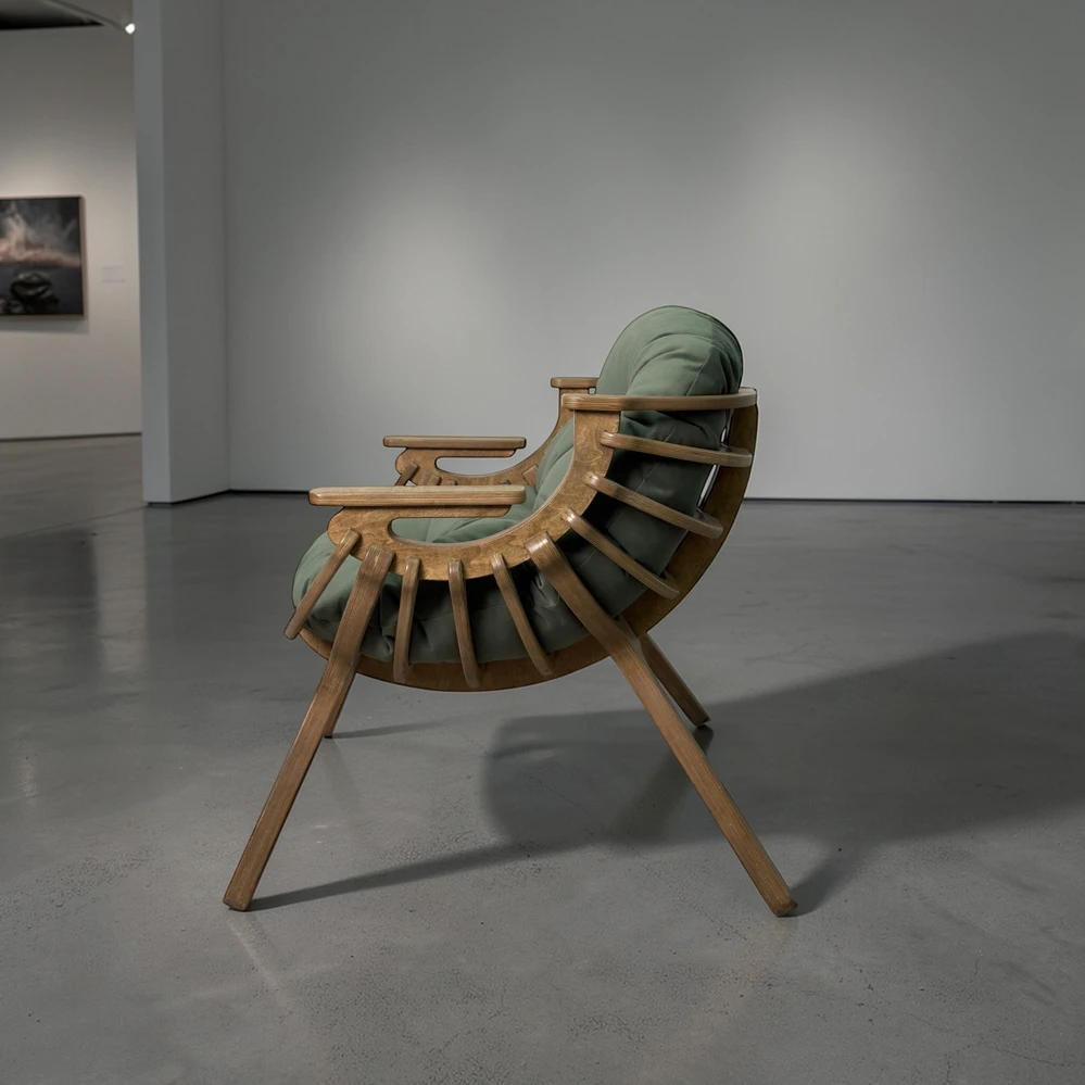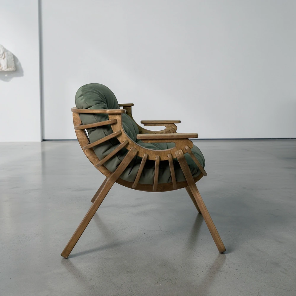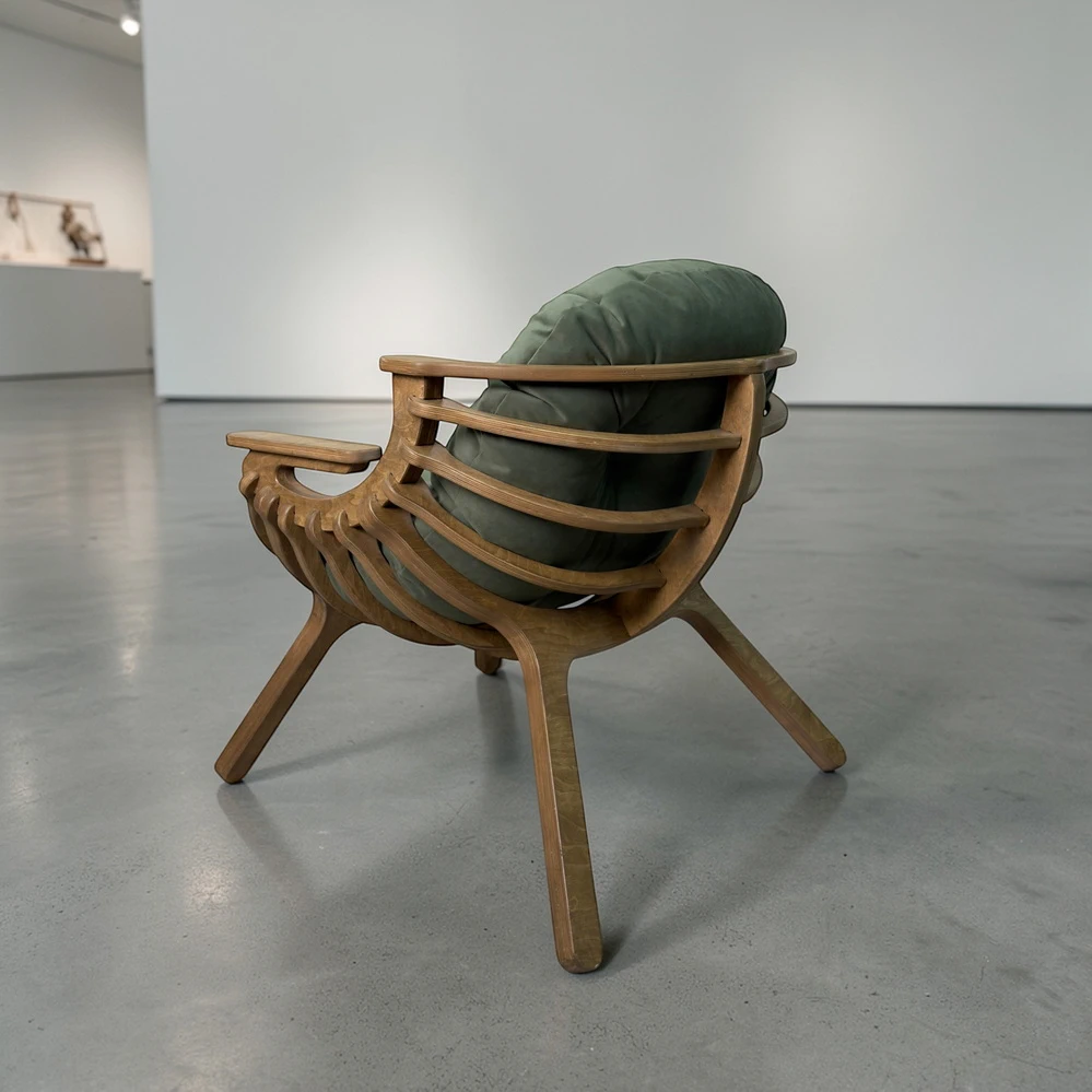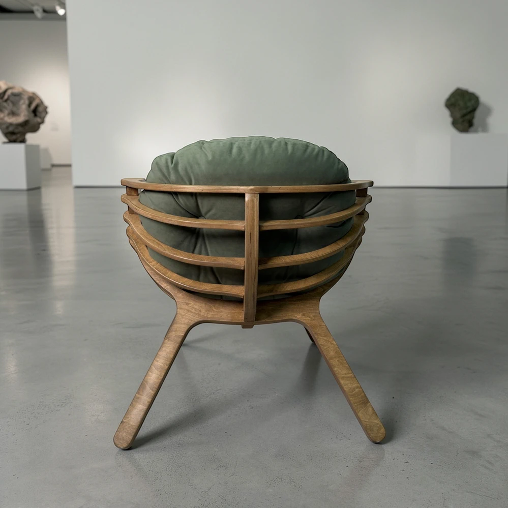 Каркас изготовлен из березовой фанеры толщиной 18 мм с усиленной конструкцией. Ручная обработка, шлифовка и защитное покрытие повышают износостойкость и обеспечивают долгий срок службы кресла даже при активном использовании.