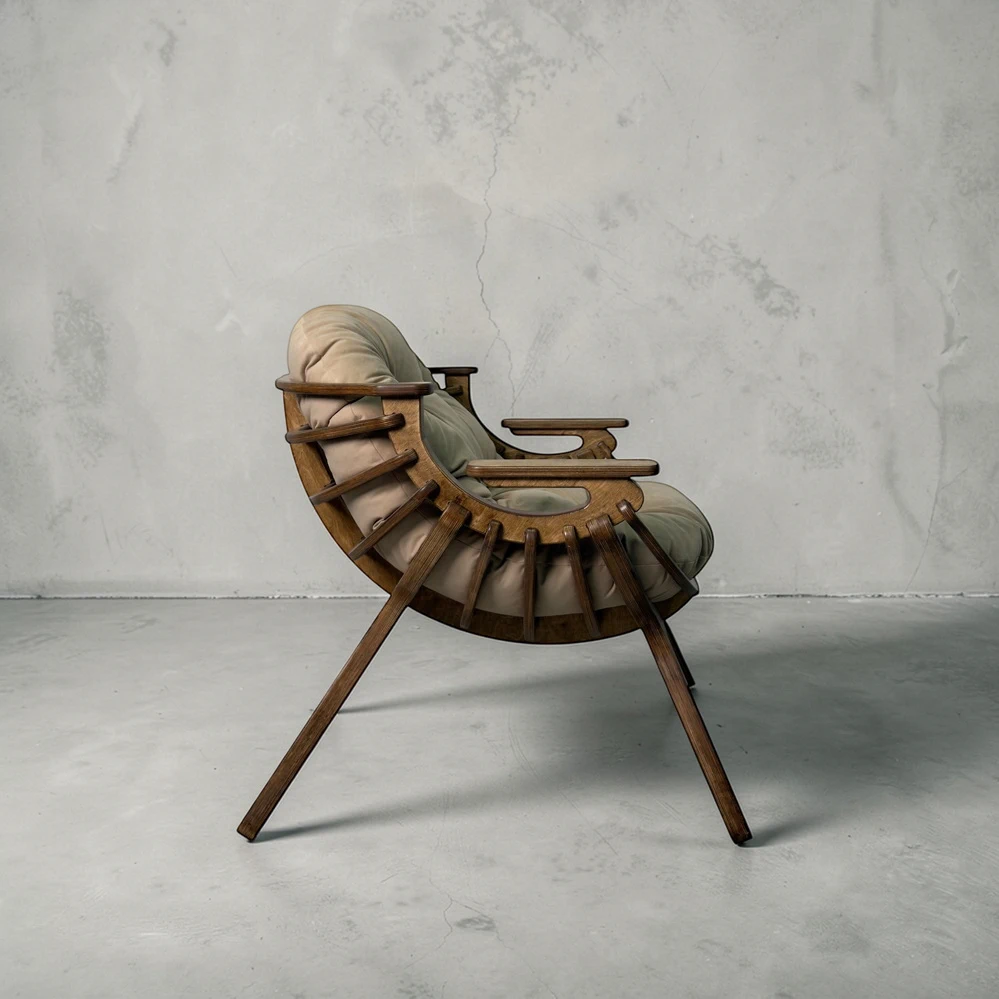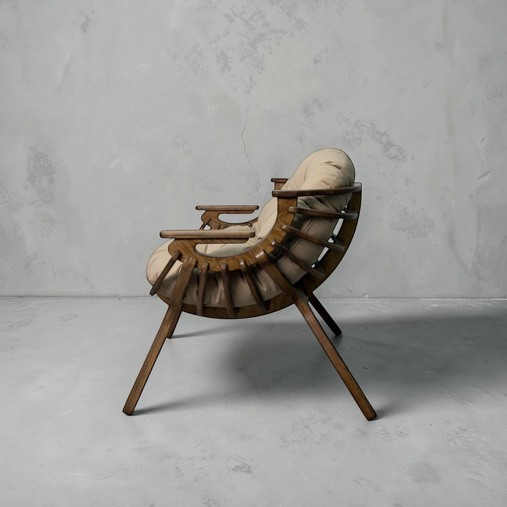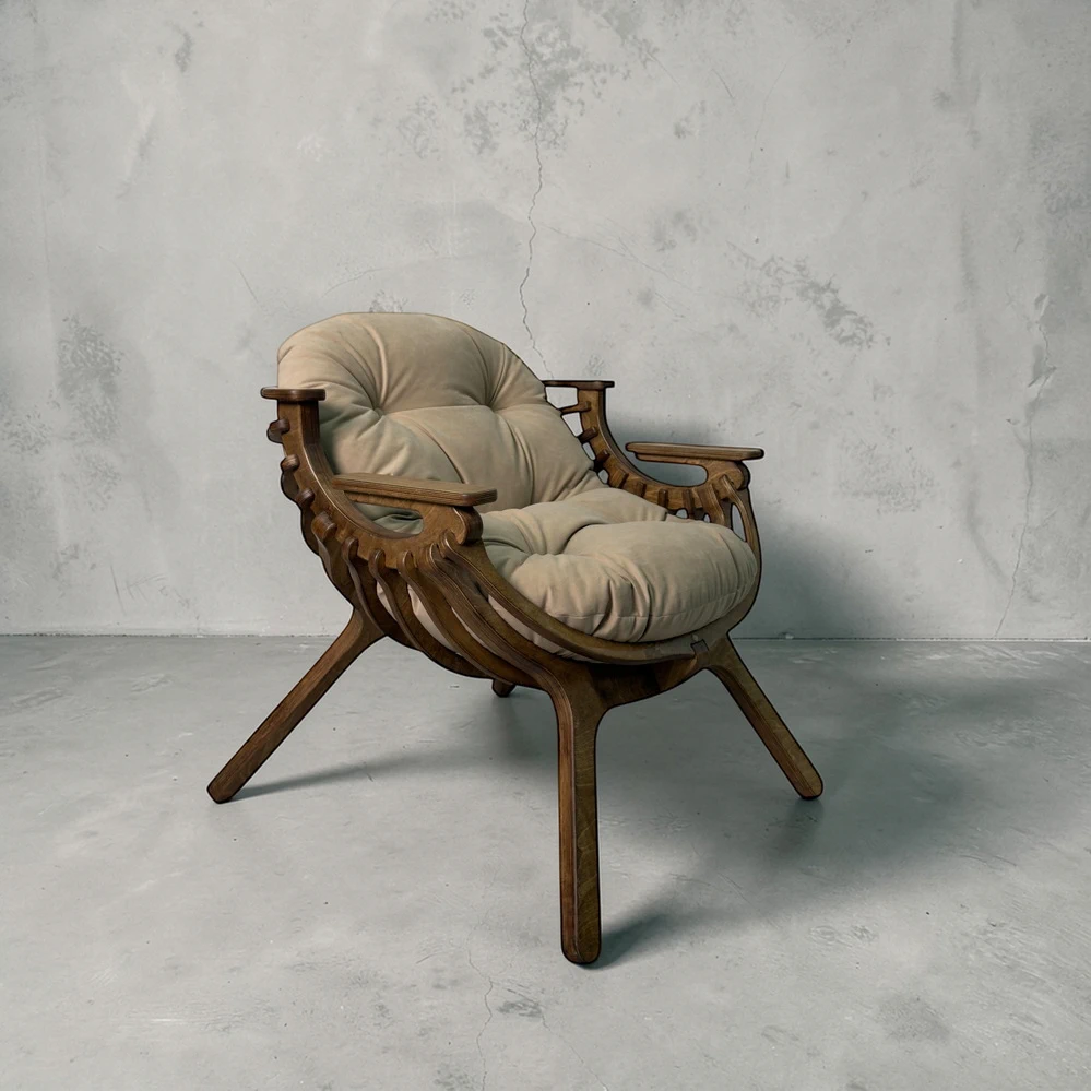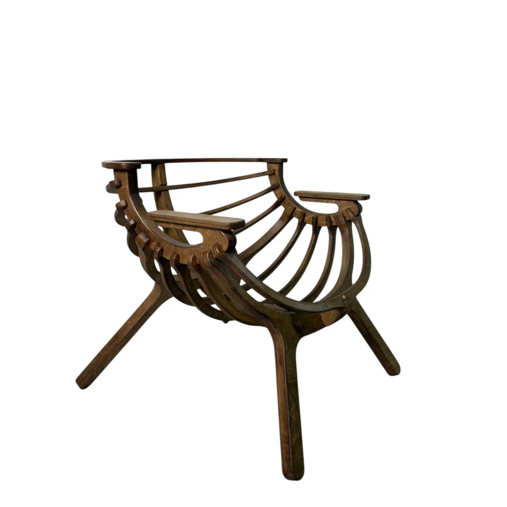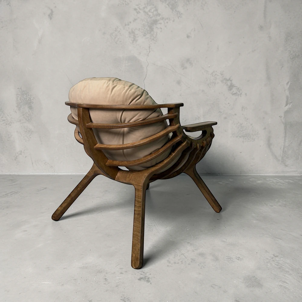 Каркас из березовой фанеры 18 мм с двойной конструкцией гарантирует прочность и надежность. Ручная обработка деталей повышает долговечность кресла.