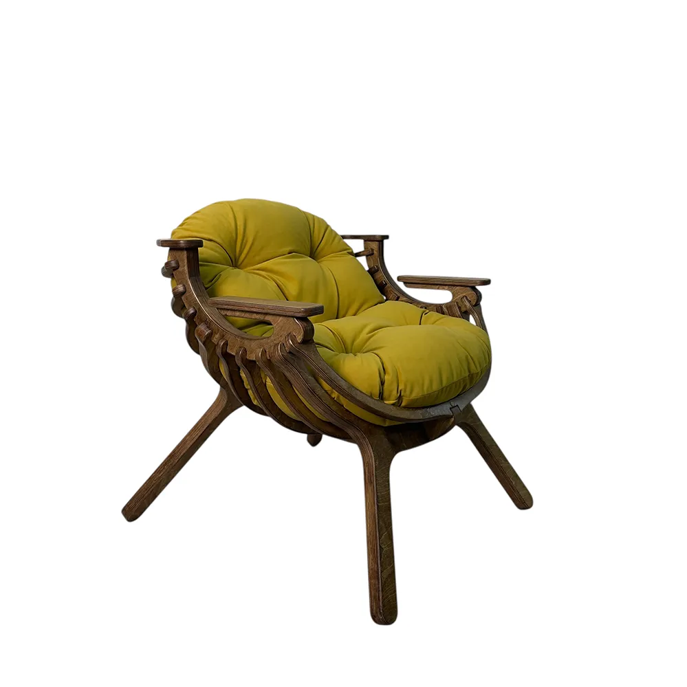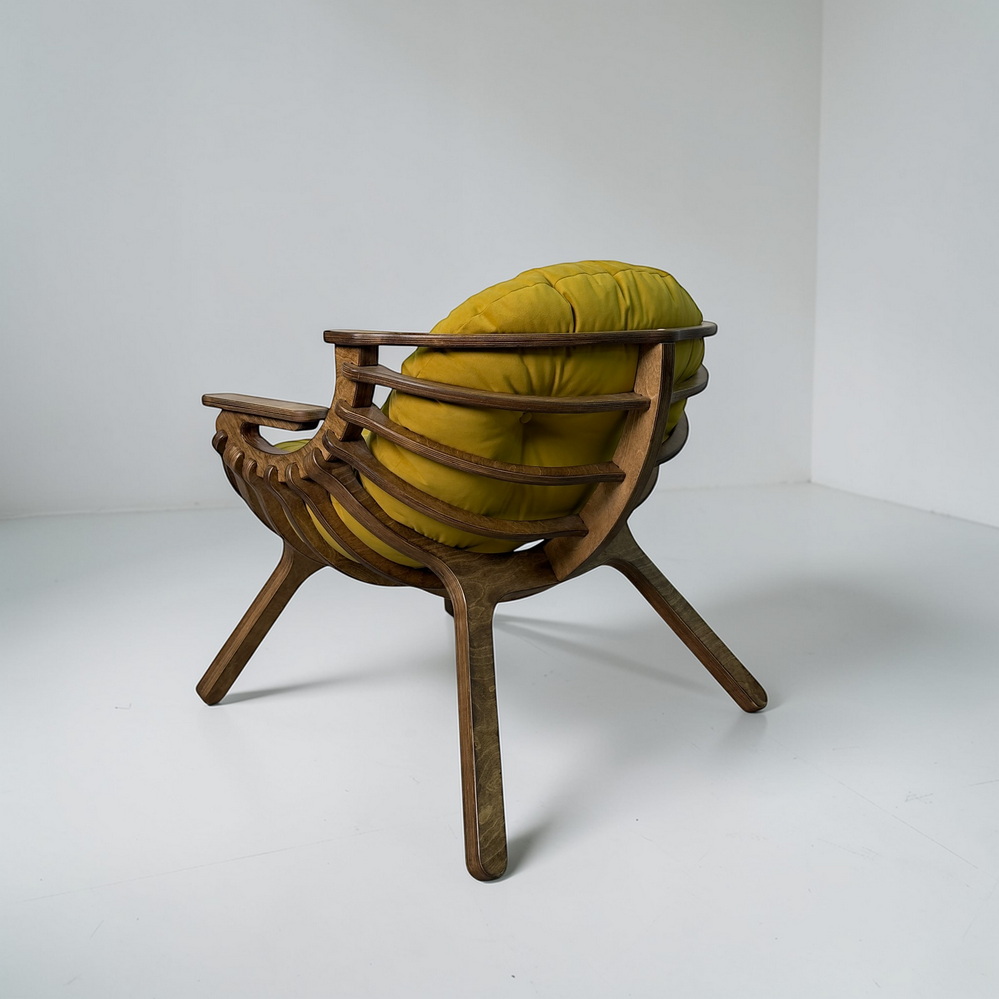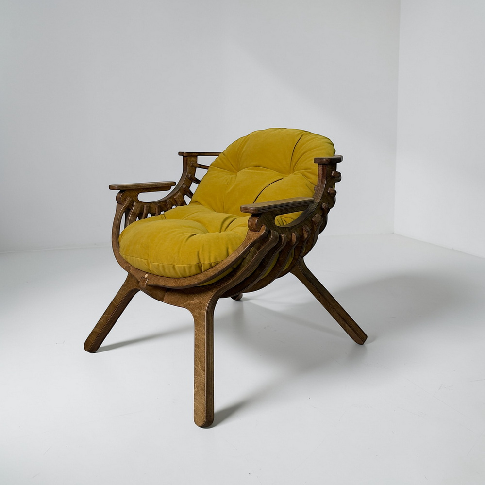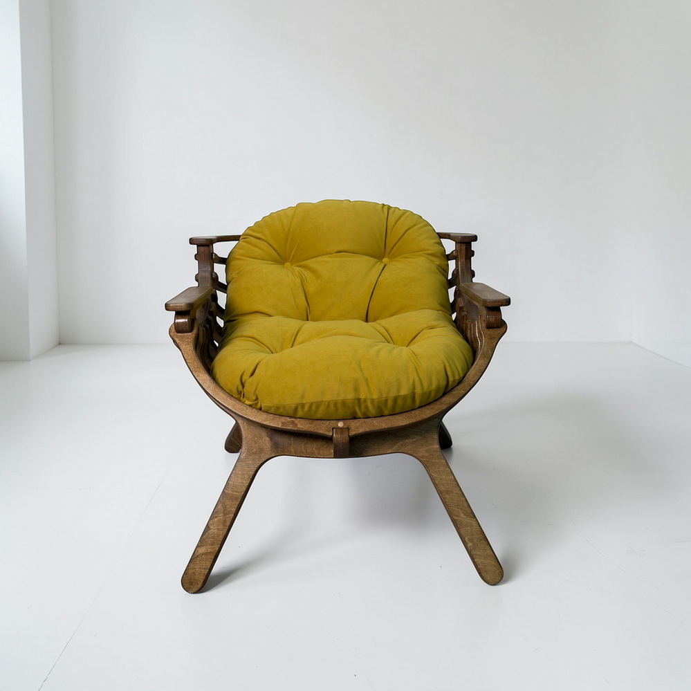 Каркас из березовой фанеры 18 мм с двойной конструкцией гарантирует прочность и надежность. Ручная обработка деталей повышает долговечность кресла.