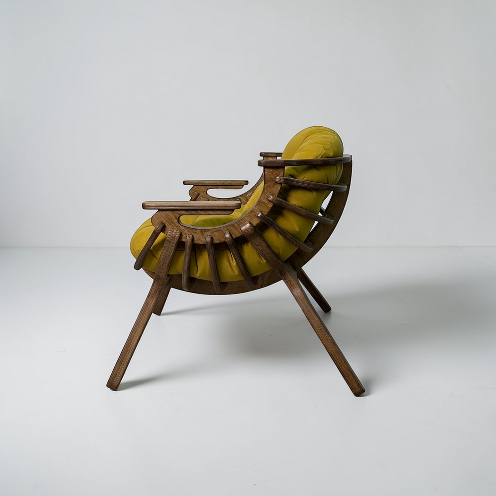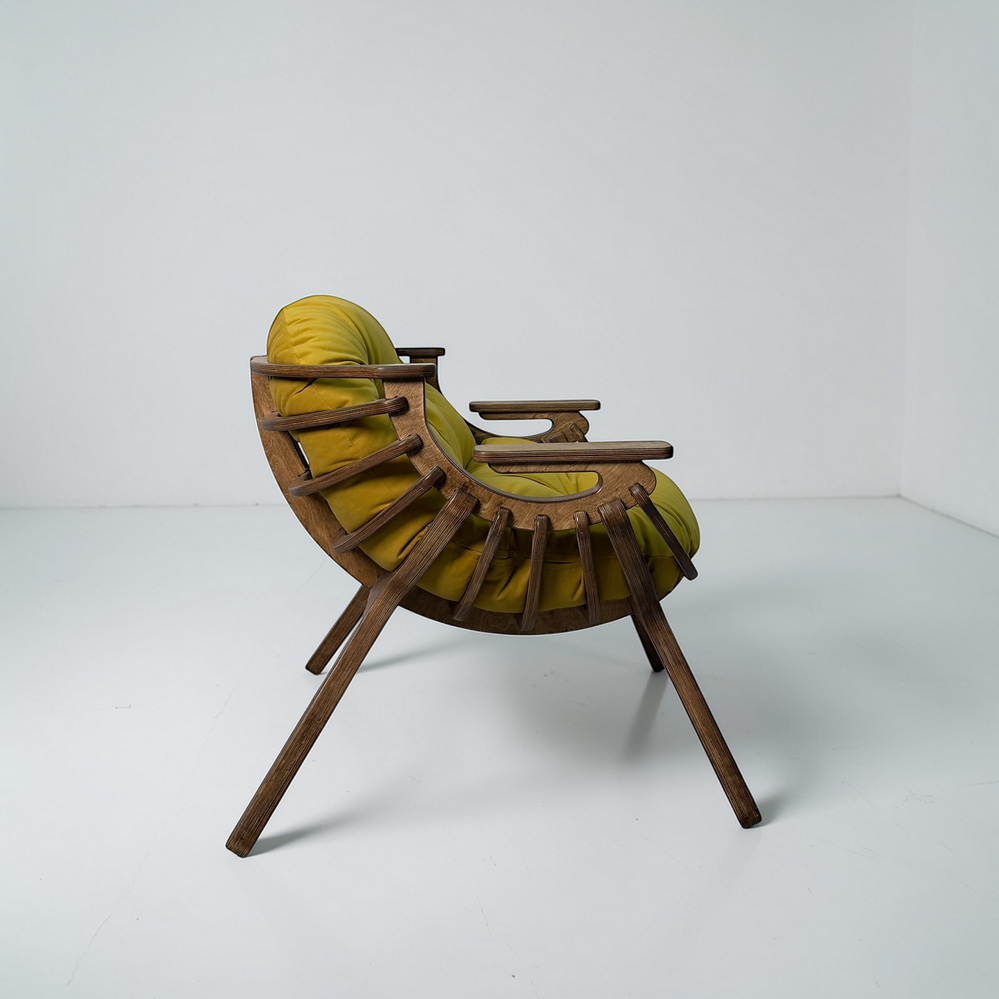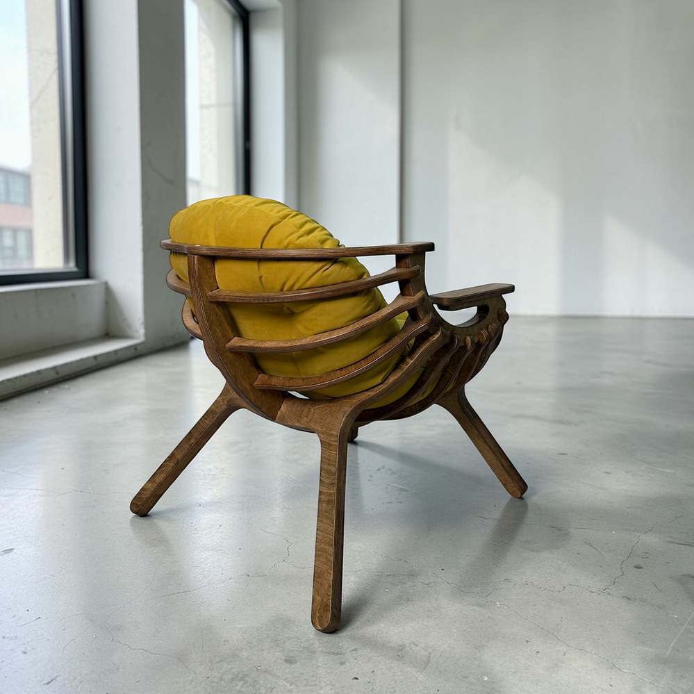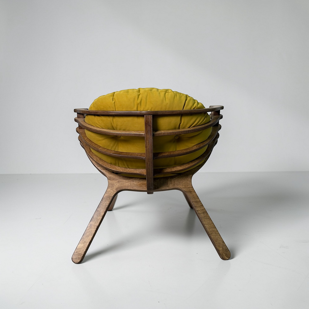 Каркас из березовой фанеры 18 мм с двойной конструкцией гарантирует прочность и надежность. Ручная обработка деталей повышает долговечность кресла.