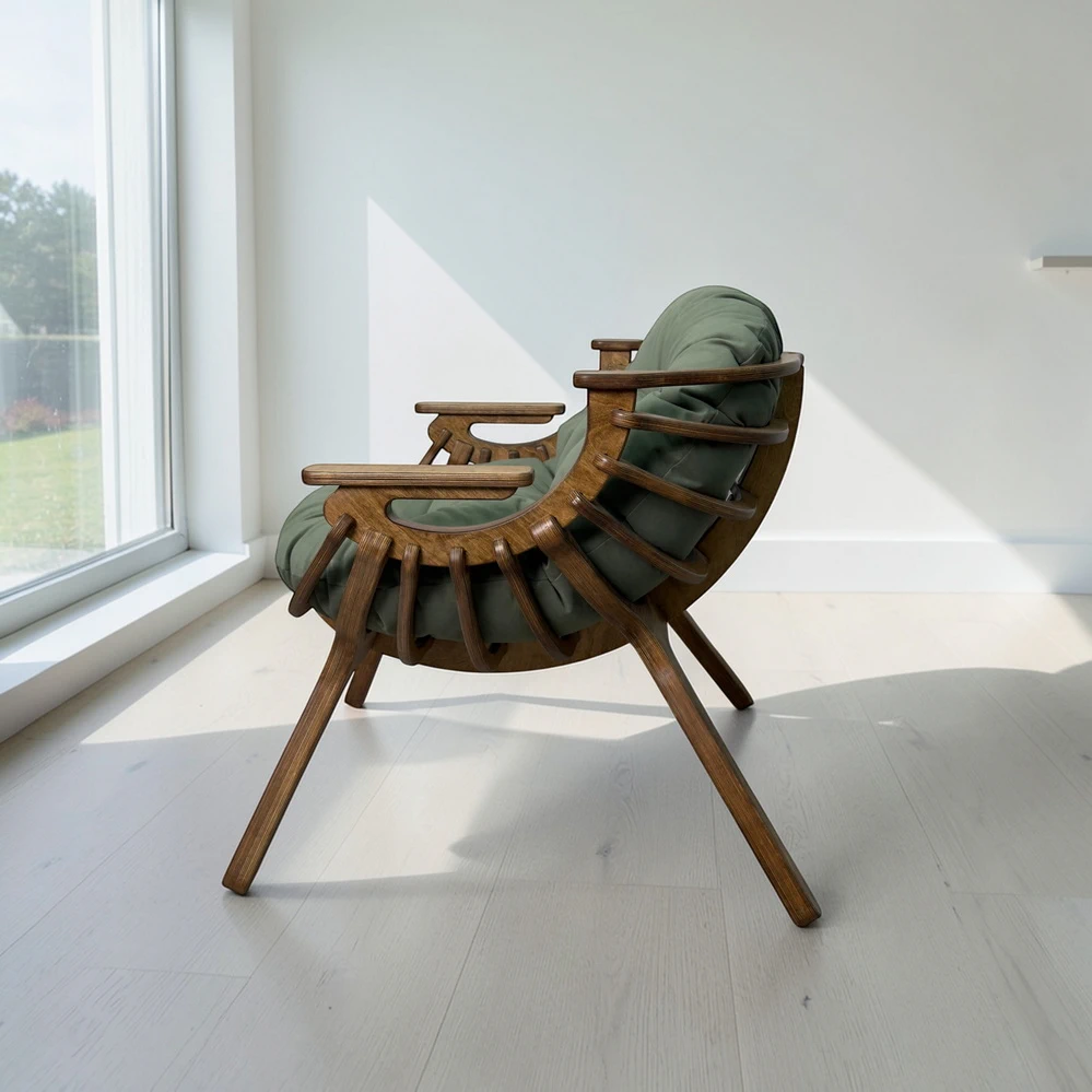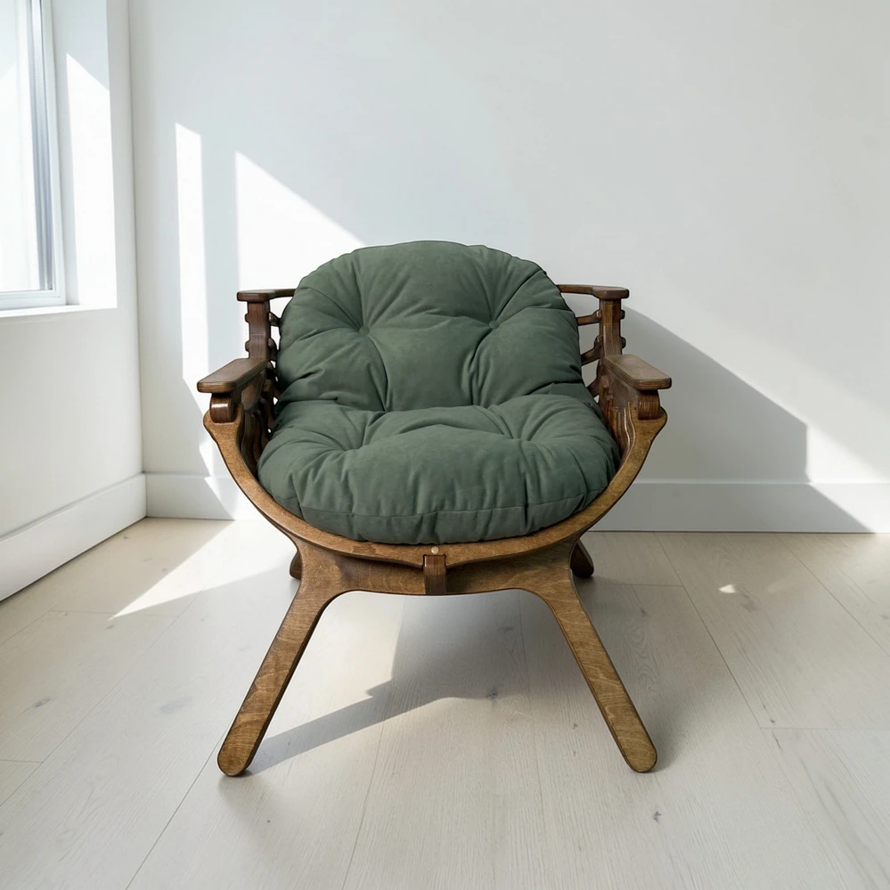 Форма кресла в виде кокона повторяет контуры тела, подлокотники поддерживают руки естественно, а мягкая подушка обеспечивает глубокий релакс.
