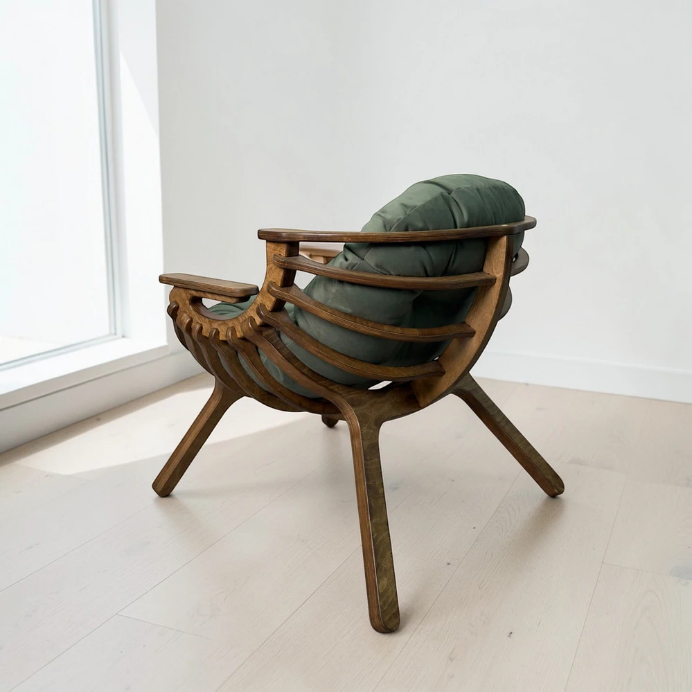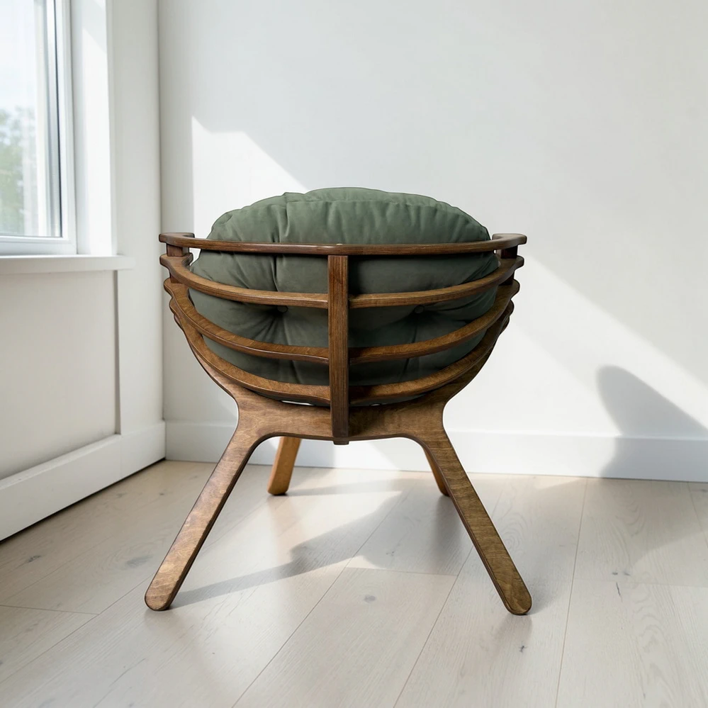 Каркас из березовой фанеры 18 мм с двойной конструкцией гарантирует прочность и надежность. Ручная обработка деталей повышает долговечность кресла.