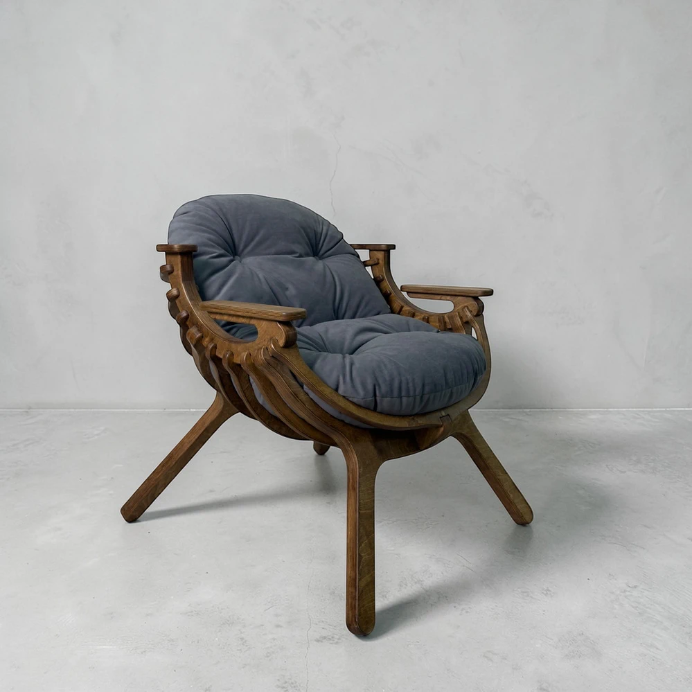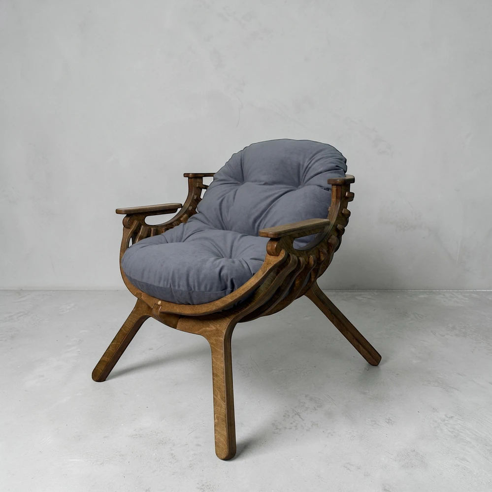 Изящная форма кресла в виде кокона повторяет контуры тела, подлокотники поддерживают руки естественно, а мягкая подушка обеспечивает глубокий релакс.