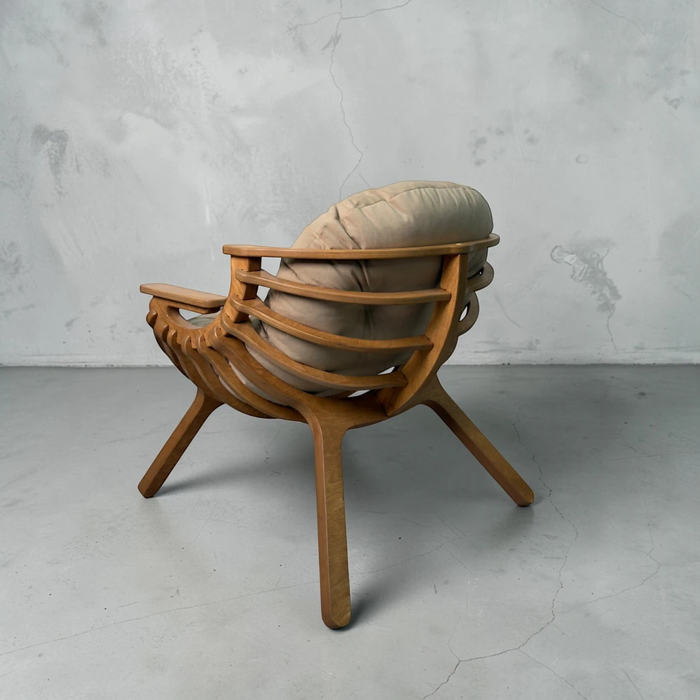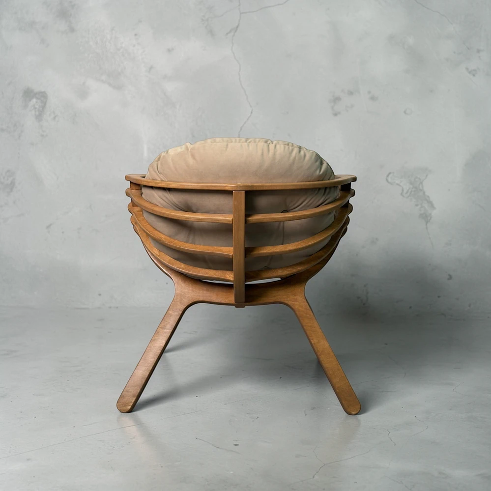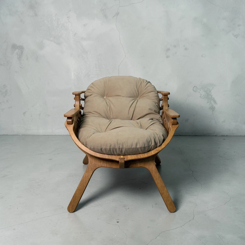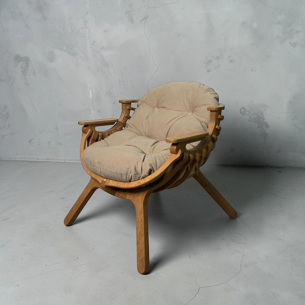Каркас выполнен из двойного слоя березовой фанеры 18 мм, что обеспечивает устойчивость и долговечность. Форма кресла в виде мягкого кокона помогает расслабиться и буквально "провалиться" в отдых. Подлокотники повторяют естественное положение рук, создавая комфорт без лишнего напряжения.