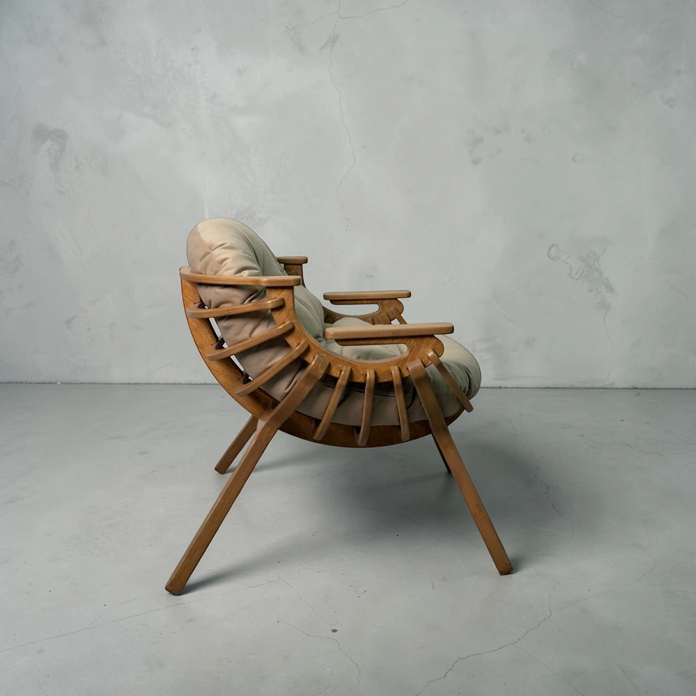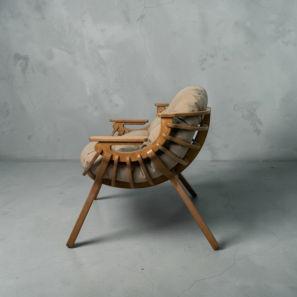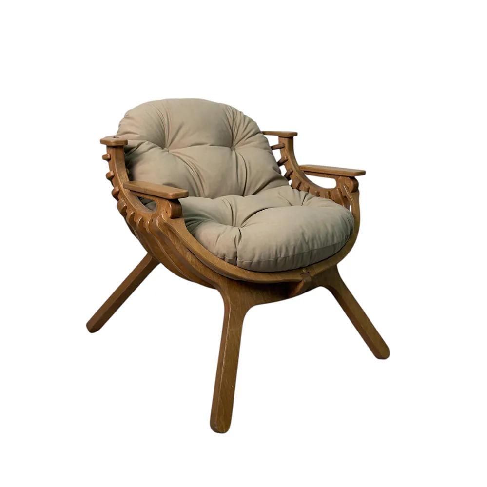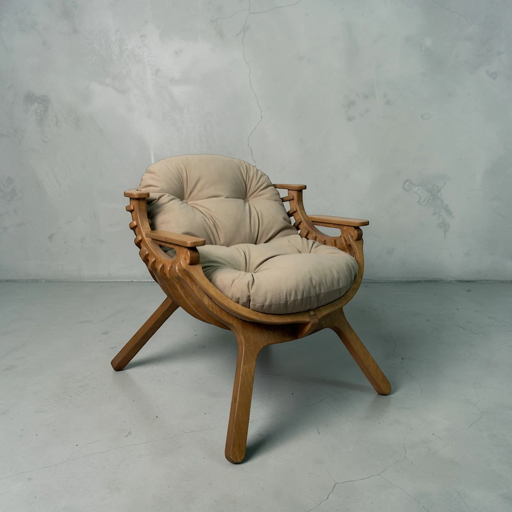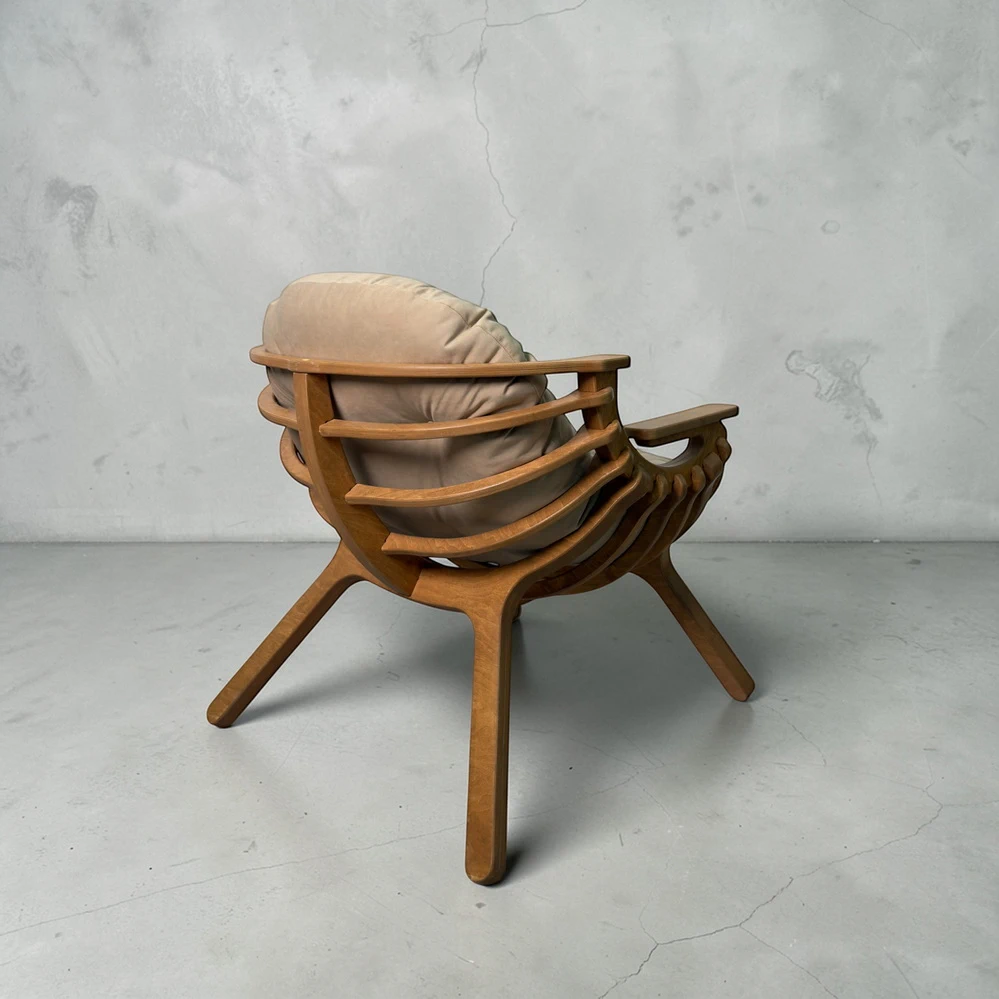 Каркас выполнен из двойного слоя березовой фанеры 18 мм, что обеспечивает устойчивость и долговечность. Форма кресла в виде мягкого кокона помогает расслабиться и буквально "провалиться" в отдых. Подлокотники повторяют естественное положение рук, создавая комфорт без лишнего напряжения.