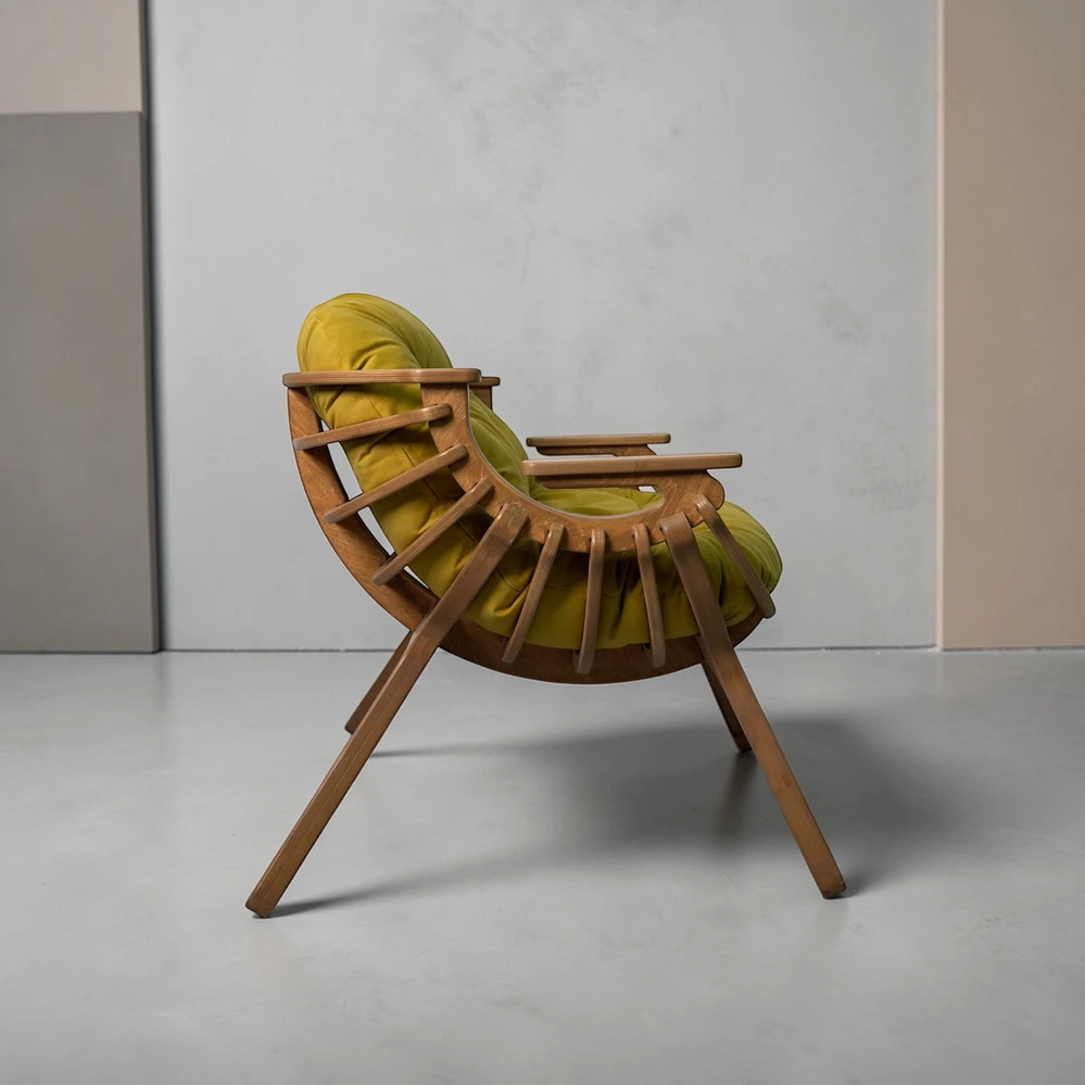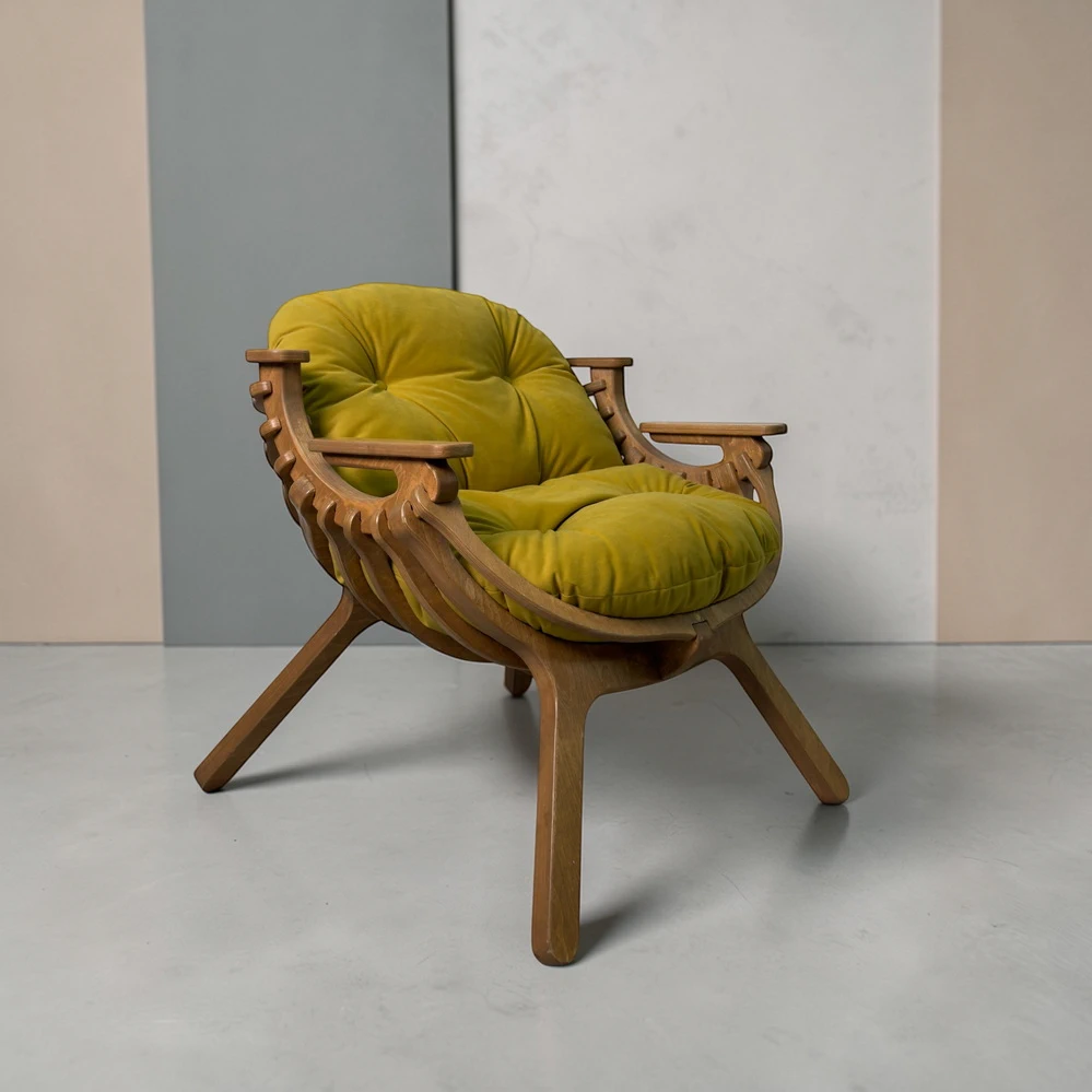 Каркас выполнен из тика, обработан вручную двумя слоями масла с шлифовкой и полировкой. Для внутреннего применения нанесён лак для финишного покрытия, придающий мягкий глянцевый оттенок и дополнительную визуальную эстетичность.
